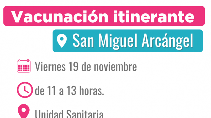 La Municipalidad de Adolfo Alsina, a través de la Secretaría de Salud, comunica que se suspendió la vacunación itinerante en San Miguel Arcángel y Gascón anunciada para la jornada de hoy, por razones de fuerza mayor, quedando la misma postergada para el próximo viernes 19 de noviembre.