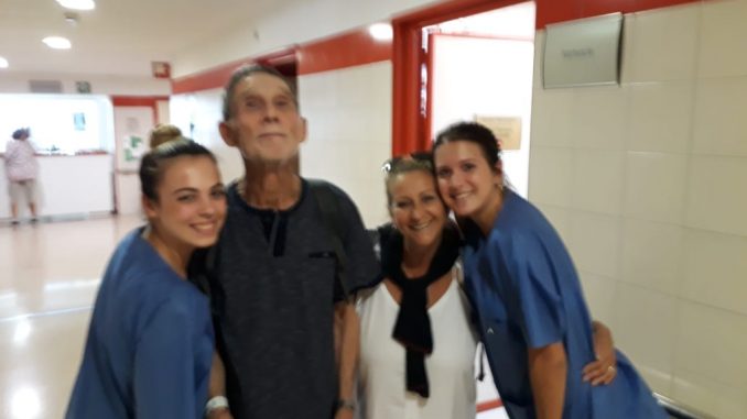 En la foto lo vemos despidiéndose de las residentes que lo cuidaron y atendieron en el Hospital general de Málaga y Susana Dominguez que junto a su hija Valeria, se mantuvieron firmes junto a Pulpi todos estos días, haciendo que este feo trance, fuera menos amargo para él…
